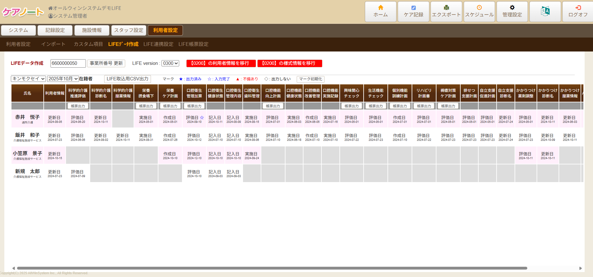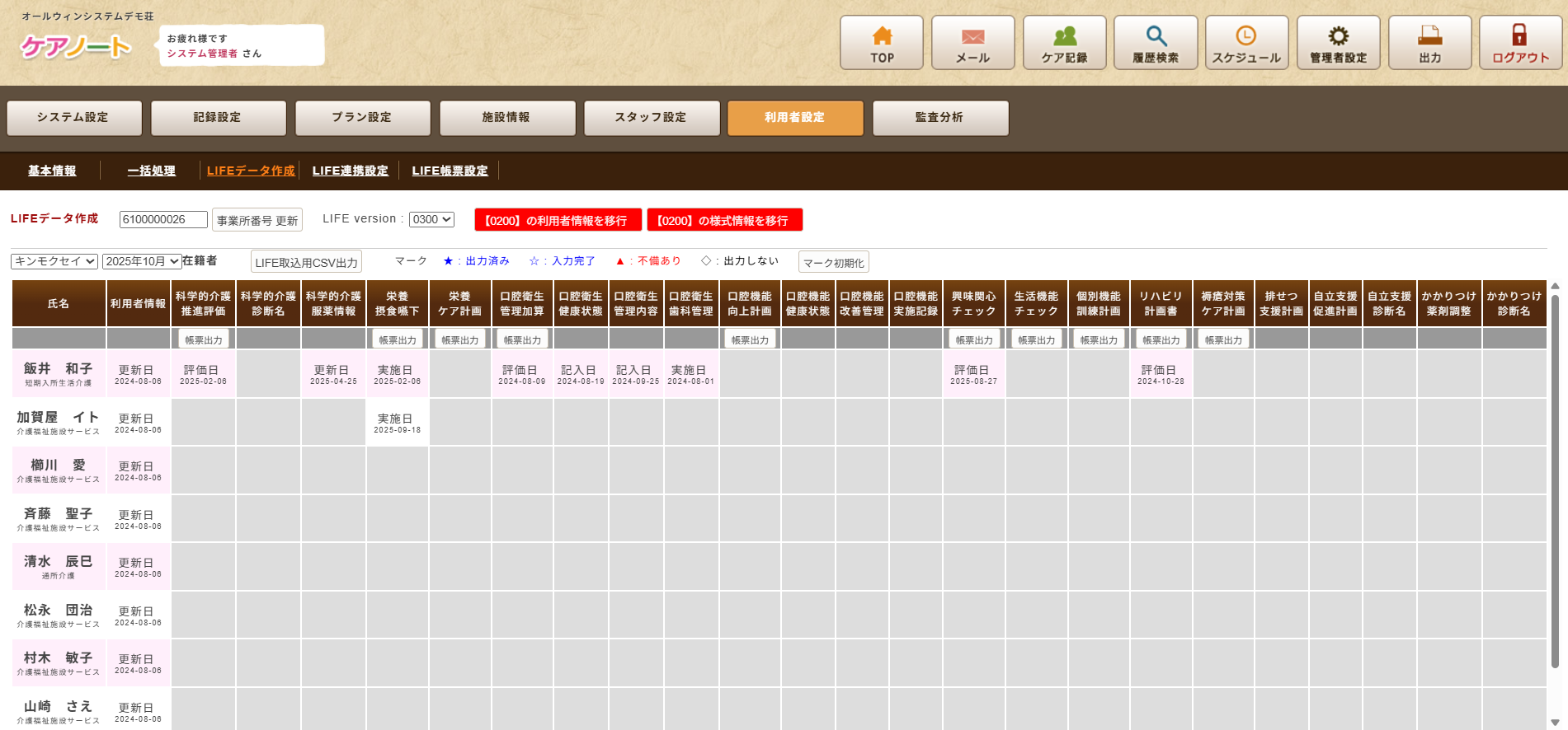 ケアノートは、LIFE入力の”大変”を軽減するため「LIFE連携オプション」をご用意しております。